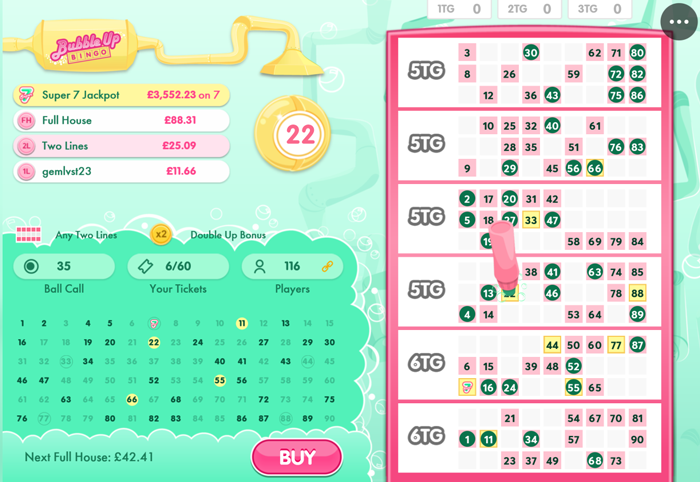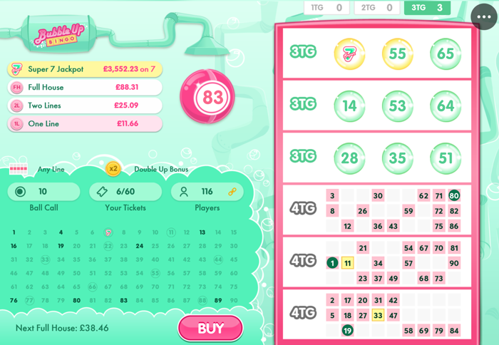 Bubble Up Bingo is an exciting game that launched in August 2021. This game is exclusive to Gamesys sites and is themed around the popular Double Bubble Slot games.