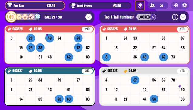 Here you can see numbers 49 and 90 are marked to indicate your Tops and Tails numbers